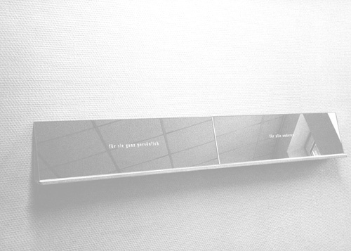 für sie ganz persönlich, für alle andern, 2-teilig, 1999, Holz, Spiegel, Siebdruck