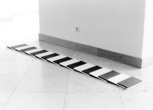 Ohne Titel, 19-teilig,1992, Spanplatte, Acryl